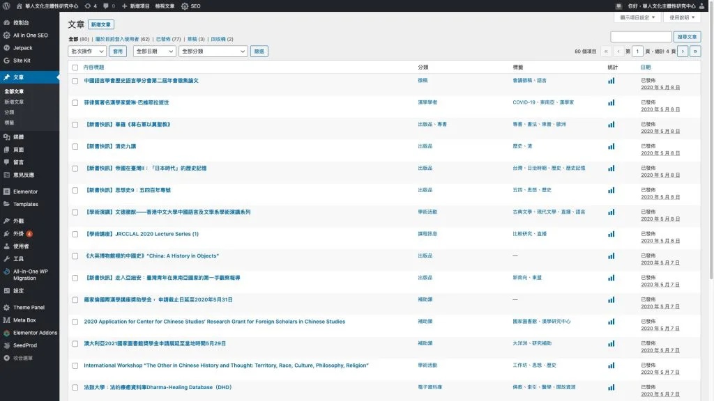 網站架設完整後台,讓客戶可以自由新增調整網站內容。