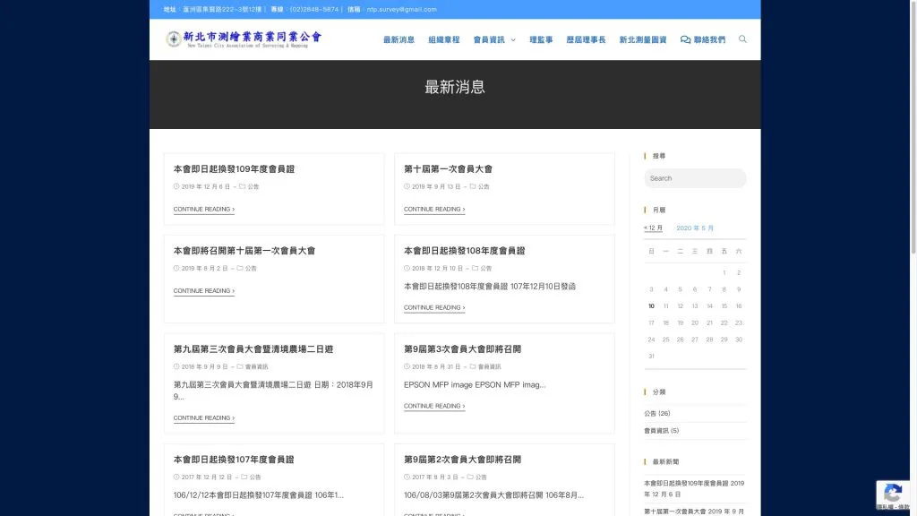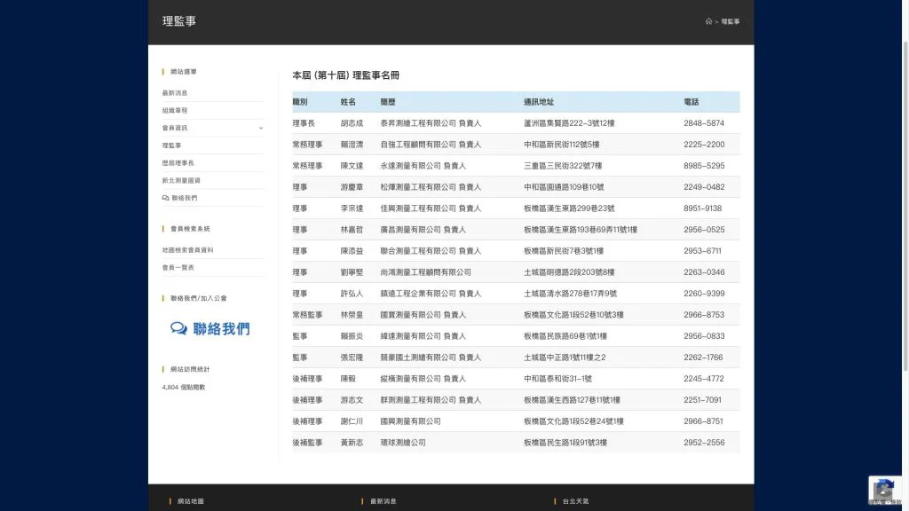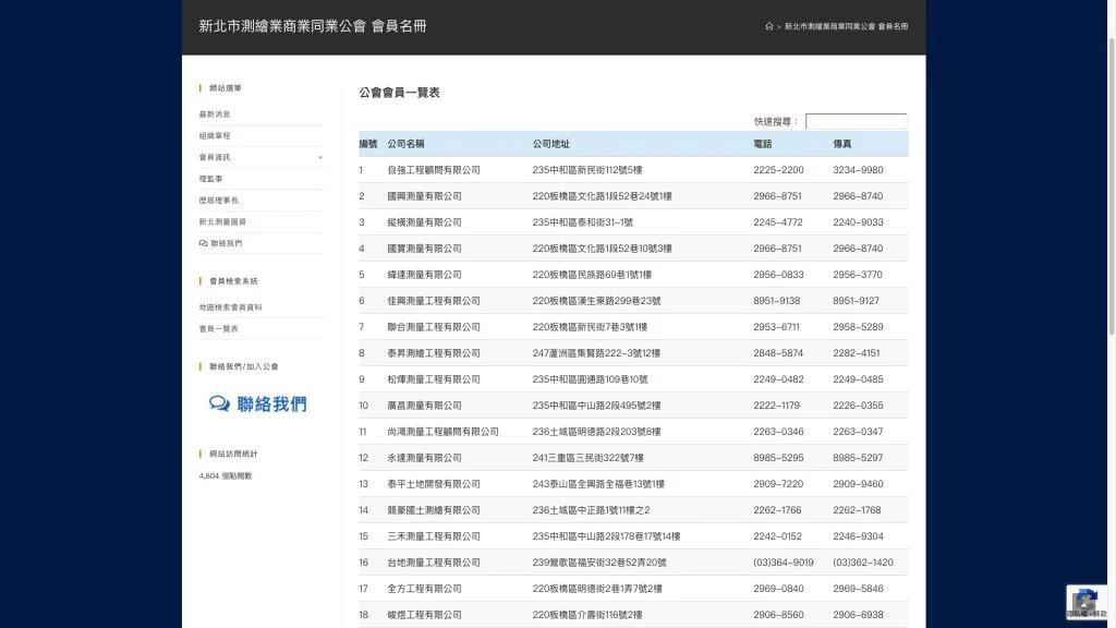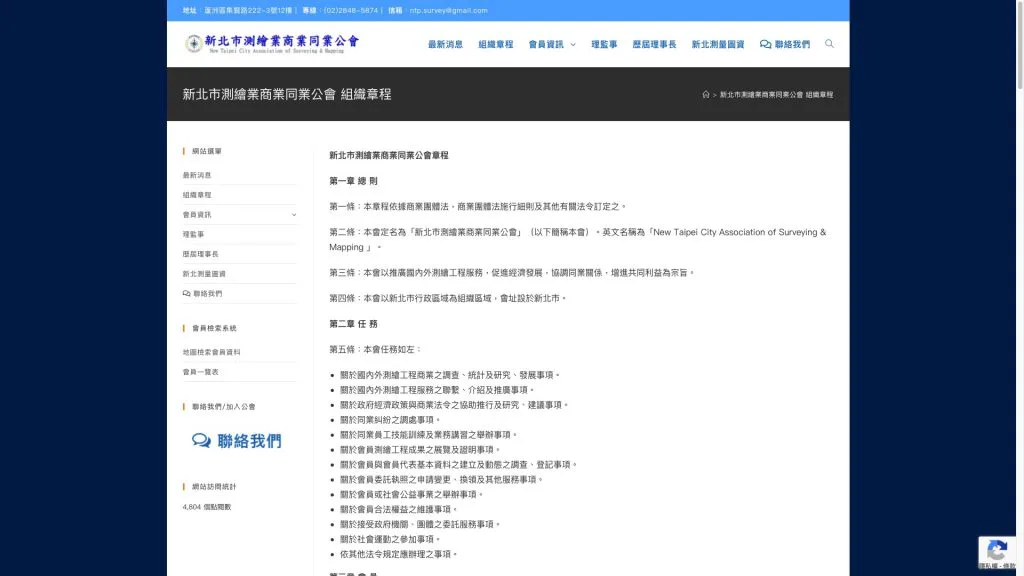- 公信力的數位延伸: 網站成功建立了公會在網路世界的專業地位,成為新北市測繪從業者獲取第一手資訊的權威渠道。